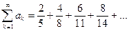 Числители дробей являются первыми четными числами: 2,4,6,8…