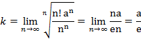 Замечание 2. При использовании радикального признака Коши удобно использовать формулу Стирлинга и следствие из неё (Фихтенгольц