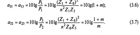 Определим затухание а12 в направлении 1,2. Для этого подключим генератор с внутренним сопротивлением Z1 со стороны зажимов 1,1 РУ. На входе 1,1 поглощается мощность Р1, равная сумме мощностей на всех зажимах РУ, т.е. P1 = Р2 + Р3 + Р4, но Р3 = P1/(1+m) [см. (1.33)],