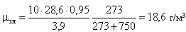 . Концентрация золы в потоке газов по (7.20)