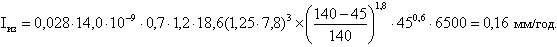 Значение KМАКСК = 3,5·(94,2/145)4 = 0,62 г/(м2·ч) для ТВП и KМАКСК = 3,5∙0,6∙0,178 = 0,37 г/(м2∙ч) для РВП. Как видно, в случае применения РВП коррозия заметно слабее, но выше допустимого предела - 0,2 г/(м2 · ч).
