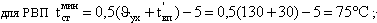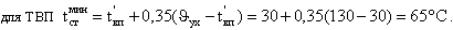 Расхождение значений – 0,9 0С. Расчетная минимальная температура металла воздухоподогревателя tминст при значениях t′вп = 30 0С и θух = 130 0С: