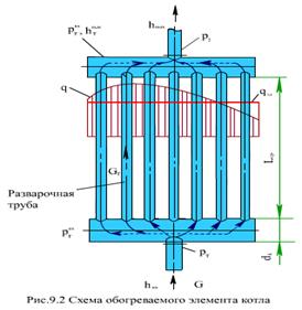 По водному теплоносителю поверхности нагрева представляют собой параллельно включенные каналы, имеющие общие входные (раздающие) и выходные (собирающие) коллекторы. Гидравлический режим системы параллельных труб и каждой отдельной трубы в ней существенно отличается от гидравлического режима одиночной трубы.