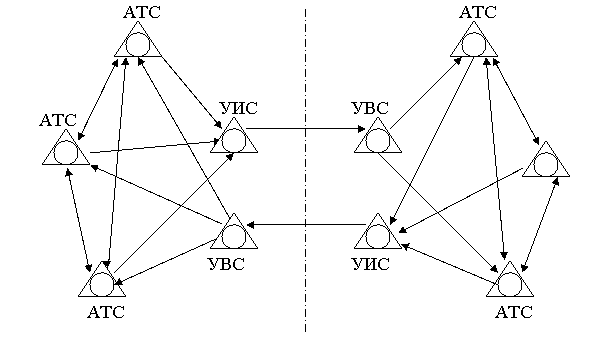 Рис. 32. Функциональная схема телефонной сети с двумя узловыми районами