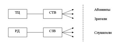 ТЦ – телецентр; СТВ – сеть телевизионного вещания; РД – радиодом; СЗВ – сеть звукового вещания