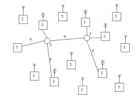 1 – телецентр; 2 – РТПС; 3 – узлы разветвления каналов; 4 – каналы связи; 5 – абонентские телевизионные приемники (телевизоры)
