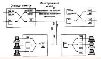 Действительно, для пары абонентов наиболее эффективным было бы предоставление им в единоличное пользование скоммутированного канала связи, как это делается в сетях с коммутацией каналов. При этом способе время взаимодействия этой пары абонентов было бы минимальным, так как данные без задержек передавались бы от одного абонента другому. Простои канала во время пауз передачи абонентов не интересуют, для них важно быстрее решить свою собственную задачу. Сеть с коммутацией пакетов замедляет процесс взаимодействия конкретной пары абонентов, так как их пакеты могут ожидать в коммутаторах, пока по магистральным связям передаются другие пакеты, пришедшие в коммутатор ранее.