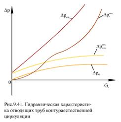 Гидравлическая характеристика контура естественной циркуляции представляет собой сумму гидравлических характеристик последовательно включенных опускных, подъемных и отводящих труб (рис.9.42)