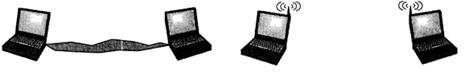 Для расстояний в пределах одного помещения могут использоваться как диапазон инфракрасных волн (рис. 53, а), так и микроволновый диапазон (рис. 53, б). Большинство современных ноутбуков оснащено встроенным инфракрасным портом, поэтому такое соединение может быть образовано автоматически, как только порты двух компьютеров окажутся в пределах прямой видимости (или видимости отраженного луча).