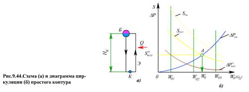 Рассмотрим методику расчета простого контура циркуляции (рис.9.44а).