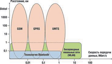 Возможности мобильного доступа в Интернет были существенно расширены с переходом на использование технологии GPRS (GeneralPacketRadioService) и будут кардинально увеличены в высокопроизводительных сотовых сетях следующего, третьего поколения (3G), к которому относится стандарт UMTS (рис. 62)