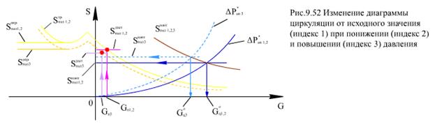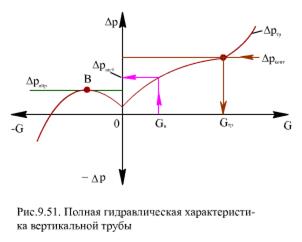 Аналогичную проверку надежности работы контура циркуляции можно проводить и по полным гидравлическим характеристикам вертикальных труб и контура в целом (рис.9.51).