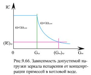 На рис.9.66 показано, что при СК.В < СКР нагрузку на зеркало испарения можно поддерживать на высоком уровне, при этом ω = ωПР .