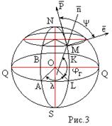 (геодезическая широта) – плоскостью экватора и нормалью к поверхности эллипсоида в точке М .