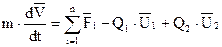 Будем рассматривать движение ракеты в безвоздушном пространстве и вне поля тяготения Земли , т.е. ракета движется под действием силы тяги . Запишем уравнение Мещерского для нашего случая :
