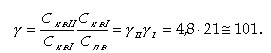 Если принять при двухступенчатой схеме nII = 20%, nI = 80%, КвI = 0, р = 1%, то получим степень концентрации γI примеси в первом отсеке