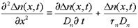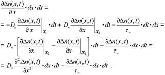 Полученное уравнение называют уравнением непрерывности для электронов. Оно учитывает диффузионное движение носителей заряда и их рекомбинацию. Интегрируя это уравнение при известных начальных и граничных условиях можно определить D n(x,t).