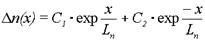Таким образом, распределение избыточной концентрации вдоль оси x характеризуется уравнением: