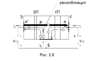 Сущность физических процессов, протекающих в транзисторе, таких, как инжекция, экстракция, диффузия, рекомбинация, рассмотрена выше (см. разд. 1 и 2 ). Вместе с тем, в транзисторе проявления этих эффектов имеют определенную специфику, связанную, в первую очередь, с взаимодействием переходов. В этой связи рассмотрим процессы, протекающие в транзисторе применительно к каждому из режимов его работы.