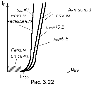 Семейство входных характеристик кремниевого n-p-n-транзистора приведено на рис. 3.22. Выражение для идеализированной входной характеристики в активном режиме имеет вид: