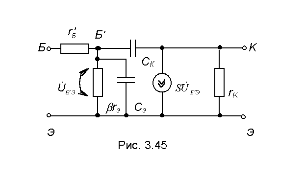 Отметим, что С* К и r* К - комплексные частотнозависимые величины. Эквивалентная схема транзистора с учетом (3.71...3.74) приведена на рис.3.43.