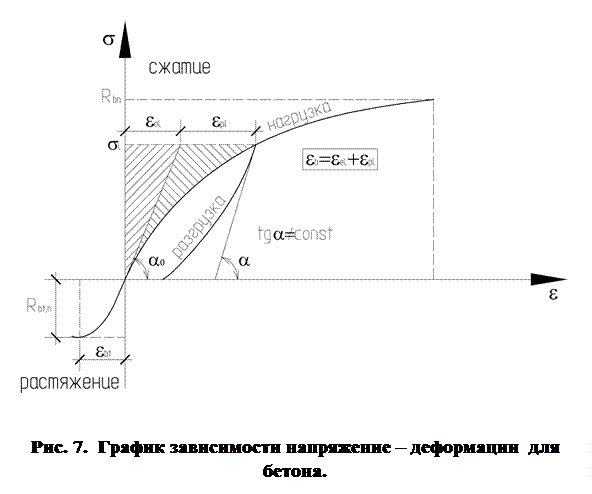 Для бетона диаграмма σ – ε имеет другой вид (рис.7).