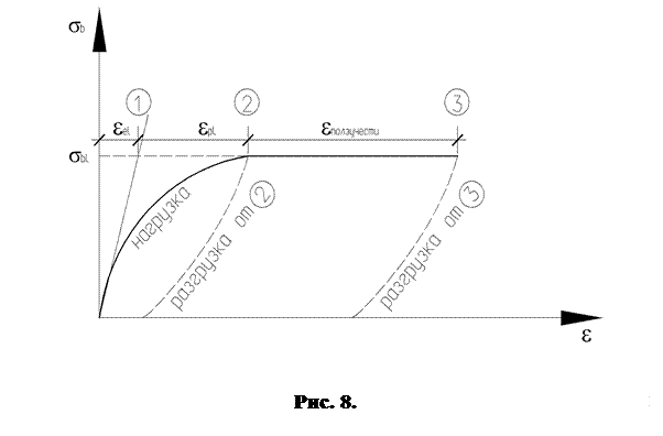 Ползучесть бетона проявляется при длительном действии нагрузки – это возрастание пластических деформаций при постоянном длительном напряжении.