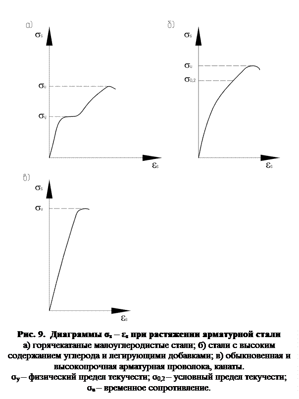 Прочностные показатели арматурных сталей рассматриваются на диаграмме σ – ε (рис. 9).
