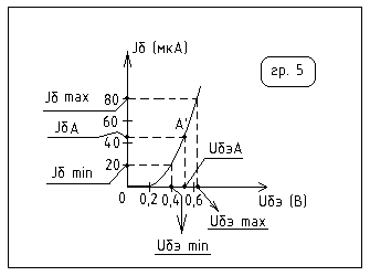 Выбираем пределы изменения Uбэ или Iб за счет входного напряжения (Из дано).