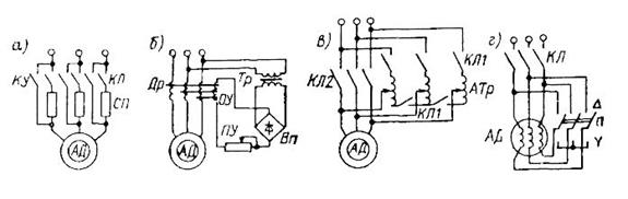 Рис.14.9 Схемы пуска асинхронного двигателя при пониженном напряжении