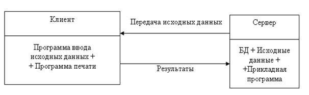 - Согласно модели СБД на компьютере клиента находятся программы ввода исходных данных и печати. Программа решения задачи находится на сервере, где, собственно, и происходит её запуск. На компьютере клиента осуществляется лишь ввод исходных данных и печать результатов .