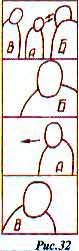 Это очень важно для хроник и репортажей, когда нет времени на мысленную проверку соответствия принципу ориентации в пространстве. Еще десяток лет назад подобные ошибки в расстановке камер в студии телевидения (рис. 31) были частым явлением. Но и сегодня они время от времени проскакивают на разных каналах, и даже на том, который так кичится своим профессионализмом. Для того, чтобы избежать аналогичных оплошностей, чтобы операторам и режиссерам было проще работать и легче освещать людей в кадре, на телевидении стали вовсю пользоваться "раскрытием" подобных сцен на камеру. Сажают гостей за стол почти в одну линию. Среднему приходится крутить головой, как курице вправо и влево почти на 180 градусов. Мизансцена беседы получается неестественной, но зато (рис. 35)...