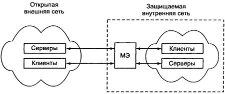 Обычно МЭ защищают внутреннюю сеть предприятия от «вторжений» из глобальной сети Internet, хотя они могут использоваться и для защиты от «нападений» из корпоративной интрасети, к которой подключена локальная сеть предприятия. Технология МЭ одна из самых первых технологий защиты корпоративных сетей от внешних угроз.