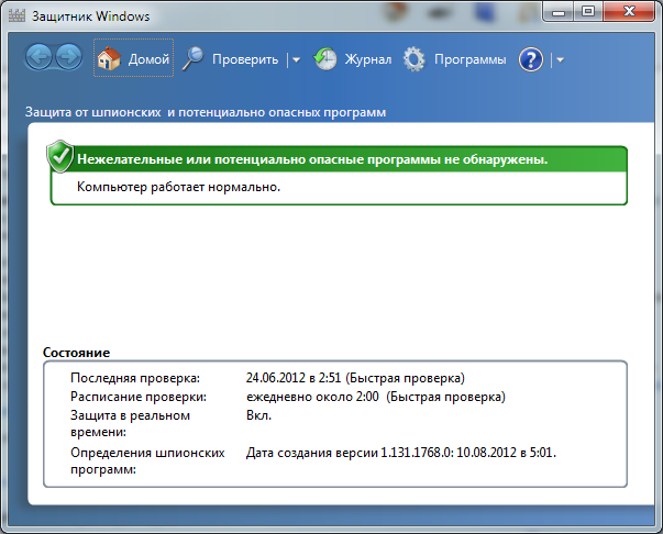 Защитник Windows - это антишпионское программное обеспечение, которое входит в Windows и автоматически запускается при включении. Антишпионское программное обеспечение поможет защитить компьютер от шпионских программ и другого нежелательного программного обеспечения. Шпионская программа может проникнуть на компьютер без ведома пользователя в любой момент, когда он подключится к Интернету, либо заразить компьютер при установке программ с компакт-дисков, DVD-дисков или другого съемного носителя. Шпионское программное обеспечение также может быть запрограммировано на непредвиденный запуск в любое время, а не только при установке.