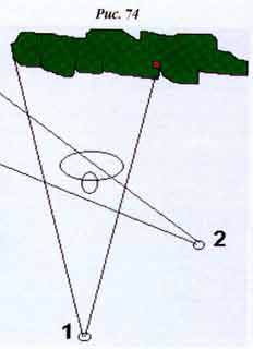 В современном экранном творчестве, в том числе в компьютерной графике и в компьютерной мультипликации, цвет призван играть весьма существенную роль. Сам по себе он одно из выразительных средств наряду с движением, светом, композицией кадра и тд. А потому, когда мы начинаем снимать какую-то сцену, стоит всегда задуматься над ее цветовым решением, над тем, как будут меняться и "работать" - естественно или искусственно - окрашенные пятна в рамках кадров. По сложившейся традиции, сначала предложим задачу с подвохом. Вы снимаете человека на натуре. Сзади него пышные и высокие кусты создают ярко-зеленый фон, а сбоку от него находится черная стена. Снимается сцена, в которой необходимо иметь средний и крупный планы героя. Или, допустим, снимаем интервью - двумя камерами. Два оператора поставили свои аппараты так, как это видно на мизансцене (рис. 74). Правильно ли они поступили? Смонтируются ли кадры, снятые с первой и второй точек? Не торопитесь искать картинку с ответом. Вообразите себе результат.