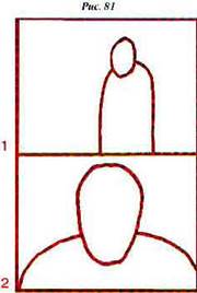 Не подумайте, что эти истории выдуманы автором всего лишь для иллюстрации девятого принципа. Подобные конфликты происходят и сейчас, а подобные результаты вы можете увидеть на экранах телевизоров в любой момент, стоит только всмотреться в передачу каких-нибудь новостей или репортажей. Давайте разберемся, в чем все-таки заключалась причина резкого недовольства режиссера результатами вашей работы? Почему спокойный человек "прыгал зайцем" на экране? Всмотритесь и вдумайтесь в планы съемок (рис. 78). Первое, что необходимо осознать: результат первой съемки от второй существенно отличаться не будет. Несовпадения главным образом проявятся в уровнях четкости и нечеткости фона и в степени смягчения черт героя при съемке среднего плана длиннофокусным и короткофокусным объективами. Иногда результат такой съемки на начинающих киношников и телевизионщиков действует ошеломляюще. Если они, конечно, склонны задумываться над плодами своего собственного труда. В самом деле: принцип монтажа по крупности соблюден, даже принцип изменения композиции кадров выполнен! Почему же не монтируются эти планы? (Рис. 79). Самое парадоксальное обстоятельство, как показывает опыт, состоит в том, что обычно объяснение этого принципа плохо воспринимается с рисунков на бумаге или на доске в аудитории. Особенно операторы относятся с большим недоверием к его сути. Поэтому проделайте мысленный эксперимент: снимите "наезд" на человека от общего до крупного плана с помощью трансфокатора, вырежьте два куска из этого наезда и смонтируйте их. Просматривая, даже мысленно, такой монтаж, можно убедиться в том, что вы ощутите неприятные рывки или скачки на склейках.