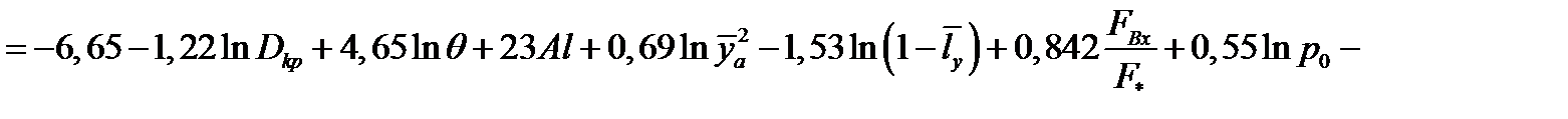 где основная зависимость от диаметра минимального (критического) сечения сопла, диаметра частиц и доли конденсата в потоке имеет вид:
