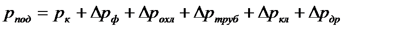 2. Напор насоса. Напор, создаваемый насосом, определяется необходимым давлением подачи рпод за вычетом давления компонента на входе в насос pвх.