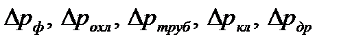 - потери давления соответственно в форсунках, охлаждающем тракте, трубопроводах, клапанах и дросселях. Расчет гидравлических потерь в системе подачи ЖРД возможен только при известных или заданных размерах охлаждающего тракта камеры, схеме системы подачи, размерах и форме трубопроводов, а также типе и числе клапанов и других местных гидравлических сопротивлений: разветвлений, угольников и т.д. Потеря давления в форсунках известна из расчета форсунок.