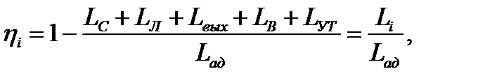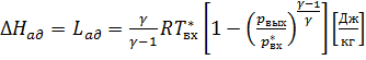 Величина располагаемой работы Lад, т.е. максимально возможной работы без потерь, определяется адиабатическим перепадом тепла ΔНад (теплоперепадом) от параметров газа в заторможенном состоянии на входе в турбину