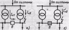 Рис. 2. Совместная (а) и раздельная (б) работа трансформаторов на подстанции