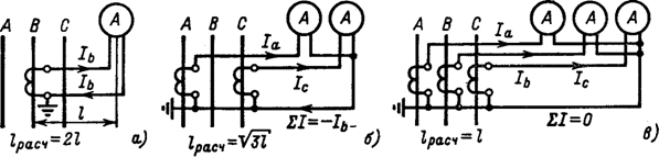 - расчетная длина, зависящая от схемы соединения трансформаторов тока (рис. 5).