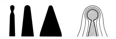 В целях оценки величины напряженности электрического поля на вершине эмиттера используют различные геометрические аппроксимации (см. рис. 8.2).