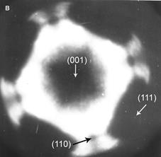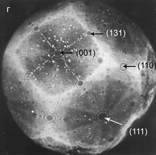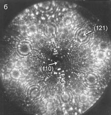 Рис. 8.8. Полевое электронное (а, в) и ионное (б, г) изображения W (сверху) и Ir (снизу) с индексацией проявляющихся граней