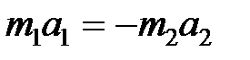 т.е. ускорения двух взаимодействующих тел обратно пропорциональны их массам и направлены в противоположные стороны.