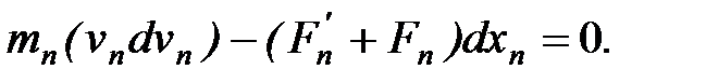 Пусть все точки за какой-то интервал времени dt совершают перемещения dx1, dx2, ..., dxn. Умножим каждое из уравнений скалярно на соответствующее перемещение и, учитывая, что dx1= v1dt, получим