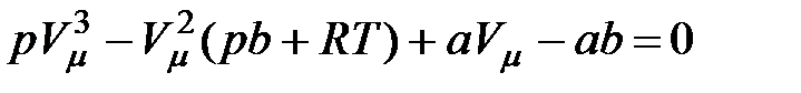 В уравнении (3.1) Ван-дер-Ваальса раскроем скобки и перенесем все его члены в левую часть. Получим уравнение третьей степени относительно молярного объема: