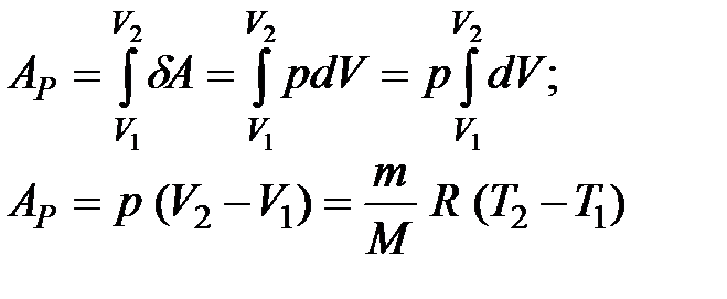 | Работа при изобарическом расширении газа численно равна площади прямоугольника и определяется выражением: