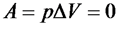 | Так как , то и . Это значит, что при изохорическом процессе газ не совершает механическую работу. Тогда первое начало термодинамики для изохорического процесса будет иметь вид: