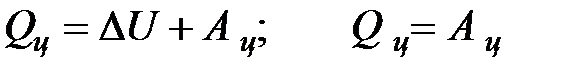 | В круговом процессе изменение внутренней энергии равно нулю, поэтому первое начало термодинамики будет иметь вид: